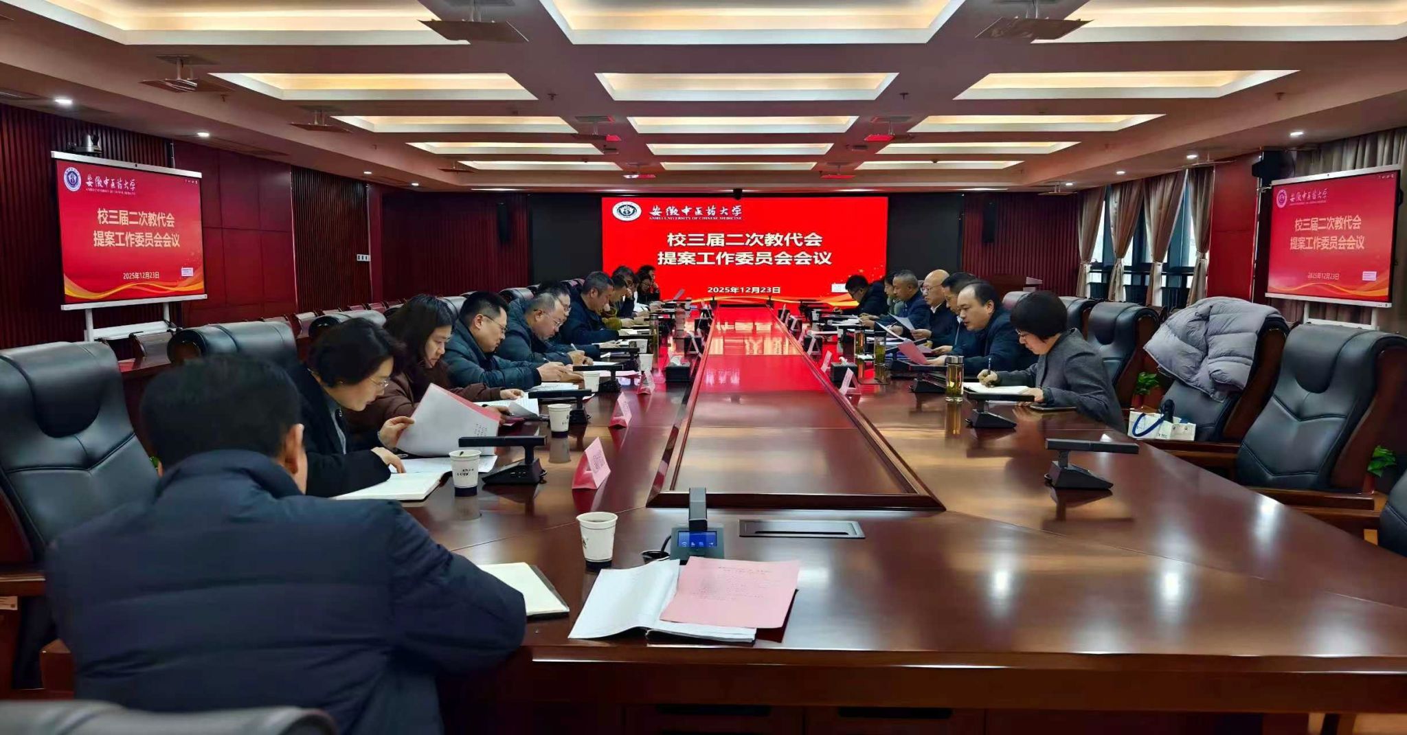 12月23日下午,学校召开三届二次教代会提案工作委员会会议,学校党委副书记、教代会执委会主任周新发,校工会相关人员,教代会提案工作委员会全体委员及各提案建议承办单位负责人参会。会议由提案工作委员会主任徐先韬主持。