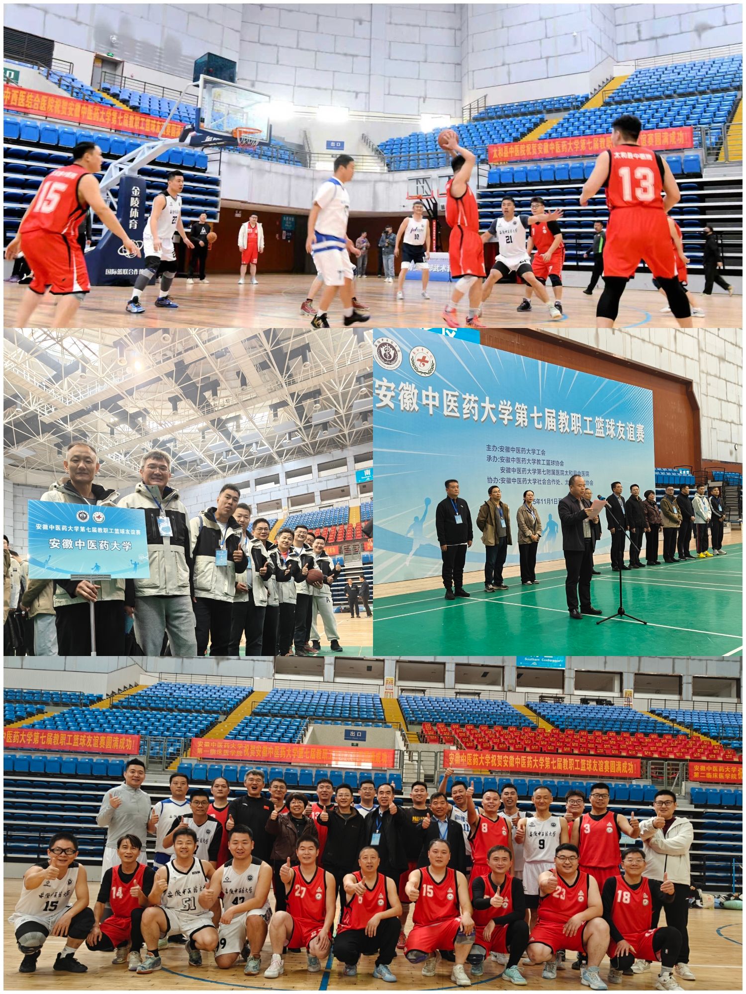 安徽中医药大学第七届教职工篮球友谊赛于11月1-2日在太和县体育中心篮球馆激情开赛。